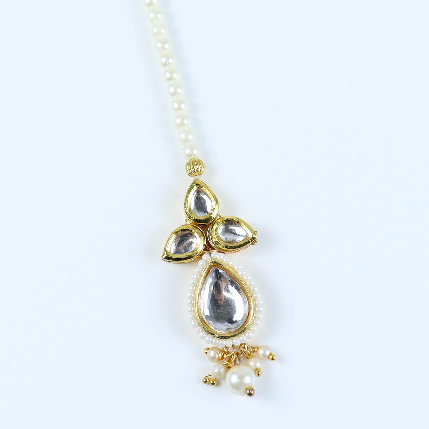 Kundan Studded Handcrafted Maang Tikka for Girls White